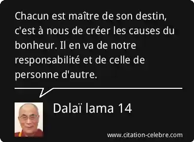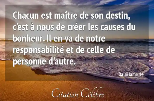 Chacun est maître de son destin, c'est à nous de créer les causes du bonheur. Il en va de notre responsabilité et de celle de personne d'autre.