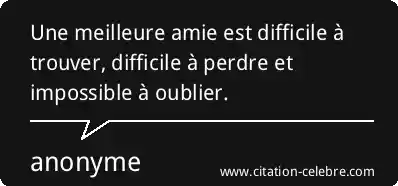 Une meilleure amie est difficile à trouver, difficile à perdre et impossible à oublier.