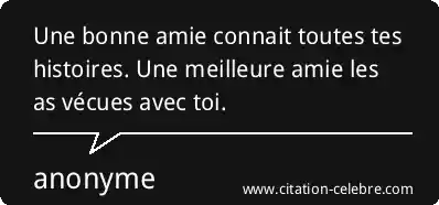 Une bonne amie connait toutes tes histoires. Une meilleure amie les as vécues avec toi.