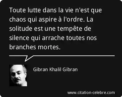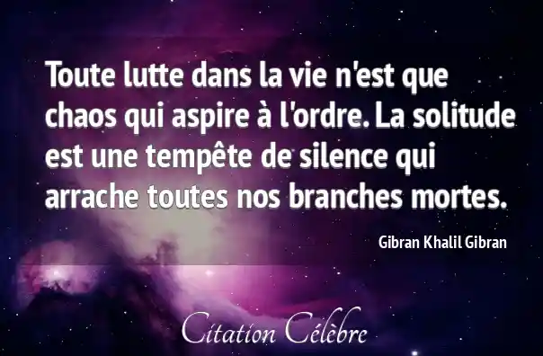 Toute lutte dans la vie n'est que chaos qui aspire à l'ordre. La solitude est une tempête de silence qui arrache toutes nos branches mortes.