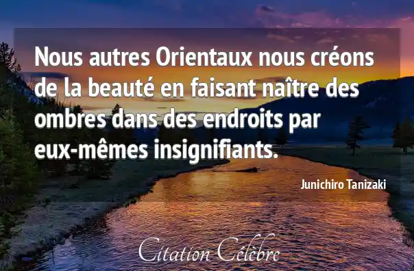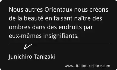 Nous autres Orientaux nous créons de la beauté en faisant naître des ombres dans des endroits par eux-mêmes insignifiants.