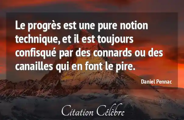 Le progrès est une pure notion technique, et il est toujours confisqué par des connards ou des canailles qui en font le pire.