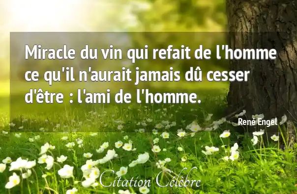 Miracle du vin qui refait de l'homme ce qu'il n'aurait jamais dû cesser d'être : l'ami de l'homme.
