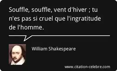 Souffle, souffle, vent d'hiver ; tu n'es pas si cruel que l'ingratitude de l'homme.