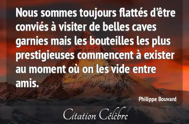 Nous sommes toujours flattés d'être conviés à visiter de belles caves garnies mais les bouteilles les plus prestigieuses commencent à exister au moment où on les vide entre amis.