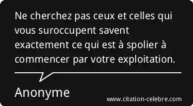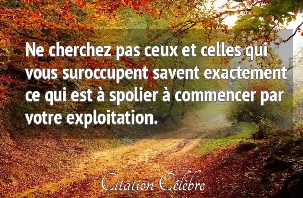 Ne cherchez pas ceux et celles qui vous suroccupent savent exactement ce qui est à spolier à commencer par votre exploitation.
