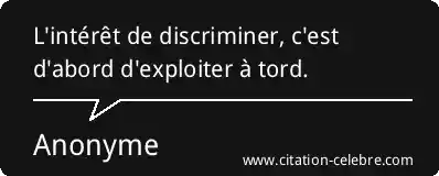 L'intérêt de discriminer, c'est d'abord d'exploiter à tord.