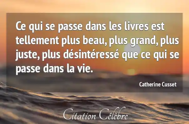 Ce qui se passe dans les livres est tellement plus beau, plus grand, plus juste, plus désintéressé que ce qui se passe dans la vie.