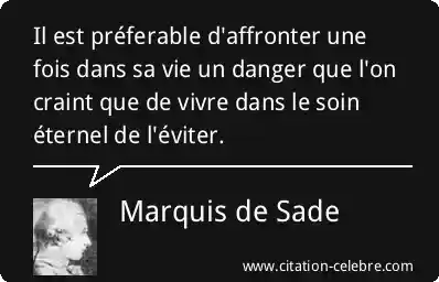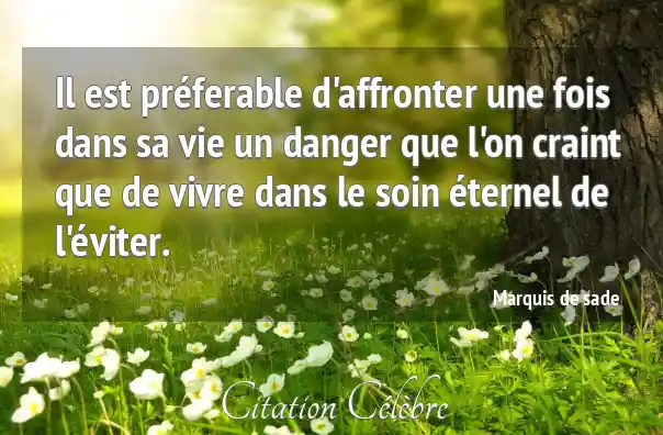 Il est préferable d'affronter une fois dans sa vie un danger que l'on craint que de vivre dans le soin éternel de l'éviter.