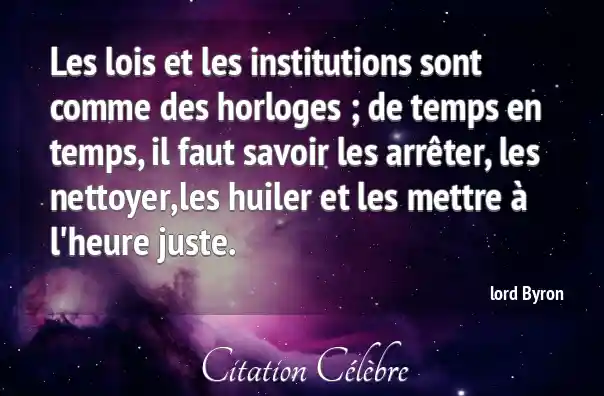 Les lois et les institutions sont comme des horloges ; de temps en temps, il faut savoir les arrêter, les nettoyer,les huiler et les mettre à l'heure juste.