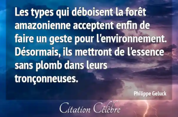 Les types qui déboisent la forêt amazonienne acceptent enfin de faire un geste pour l'environnement. Désormais, ils mettront de l'essence sans plomb dans leurs tronçonneuses.