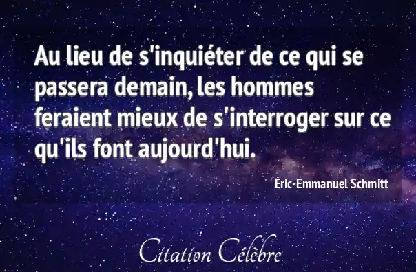 Au lieu de s'inquiéter de ce qui se passera demain, les hommes feraient mieux de s'interroger sur ce qu'ils font aujourd'hui.