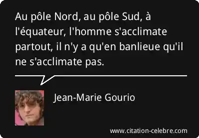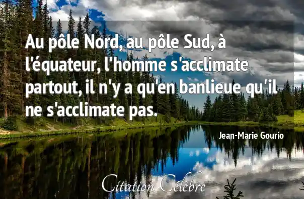 Au pôle Nord, au pôle Sud, à l'équateur, l'homme s'acclimate partout, il n'y a qu'en banlieue qu'il ne s'acclimate pas.