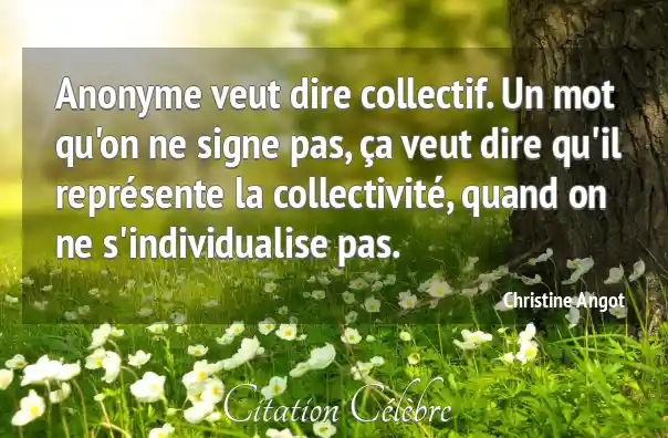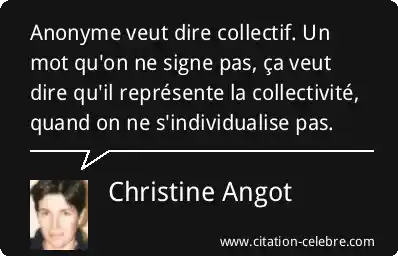 Anonyme veut dire collectif. Un mot qu'on ne signe pas, ça veut dire qu'il représente la collectivité, quand on ne s'individualise pas.
