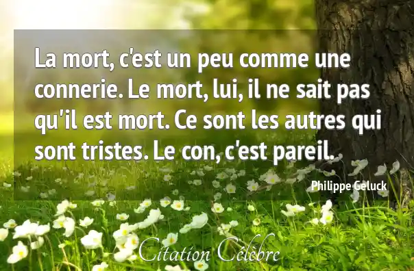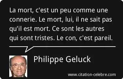 La mort, c'est un peu comme une connerie. Le mort, lui, il ne sait pas qu'il est mort. Ce sont les autres qui sont tristes. Le con, c'est pareil.