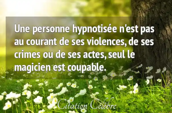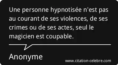 Une personne hypnotisée n'est pas au courant de ses violences, de ses crimes ou de ses actes, seul le magicien est coupable.