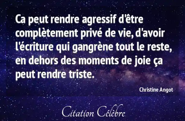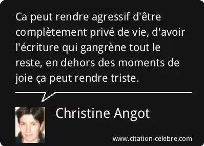 Ca peut rendre agressif d'être complètement privé de vie, d'avoir l'écriture qui gangrène tout le reste, en dehors des moments de joie ça peut rendre triste.