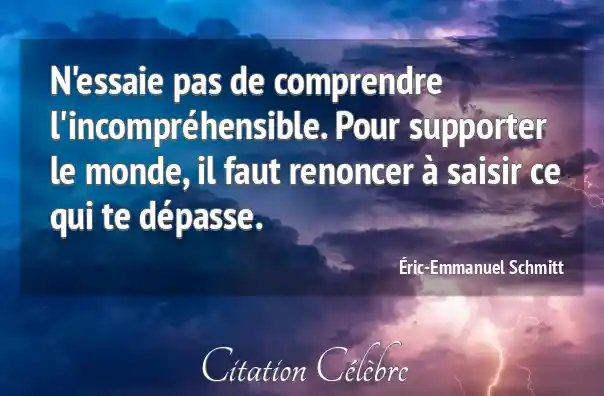 N'essaie pas de comprendre l'incompréhensible. Pour supporter le monde, il faut renoncer à saisir ce qui te dépasse.