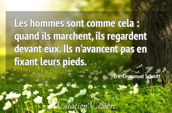 Les hommes sont comme cela : quand ils marchent, ils regardent devant eux. Ils n'avancent pas en fixant leurs pieds.