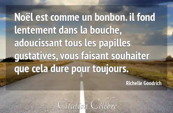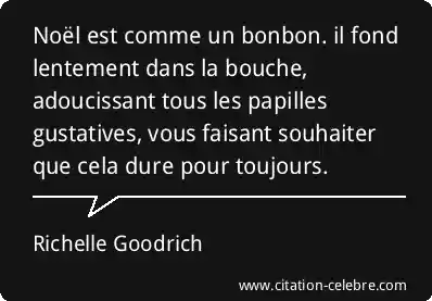 Noël est comme un bonbon. il fond lentement dans la bouche, adoucissant tous les papilles gustatives, vous faisant souhaiter que cela dure pour toujours.