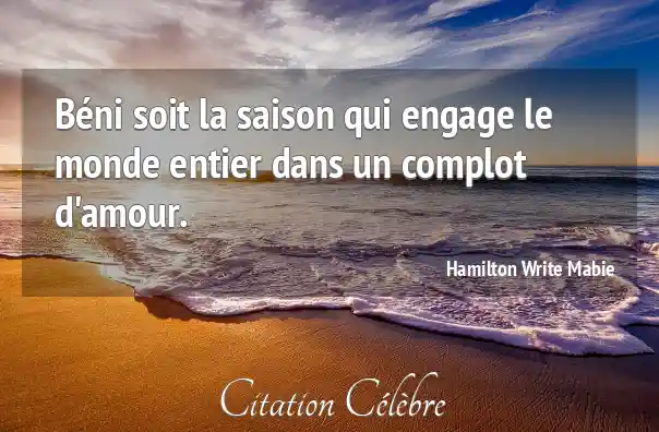 Citation Hamilton Write Mabie amour : Béni soit la saison qui engage le monde entier dans...