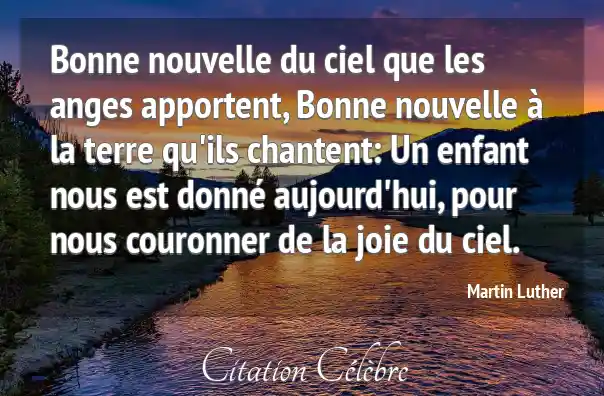 Bonne nouvelle du ciel que les anges apportent, Bonne nouvelle à la terre qu'ils chantent: Un enfant nous est donné aujourd'hui, pour nous couronner de la joie du ciel.