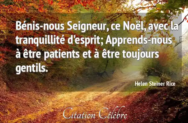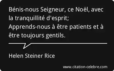 Bénis-nous Seigneur, ce Noël, avec la tranquillité d'esprit; Apprends-nous à être patients et à être toujours gentils.