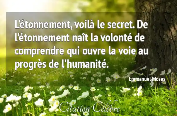 L'étonnement, voilà le secret. De l'étonnement naît la volonté de comprendre qui ouvre la voie au progrès de l'humanité.