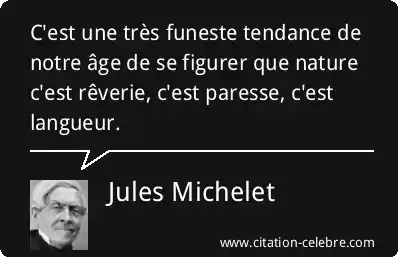 C'est une très funeste tendance de notre âge de se figurer que nature c'est rêverie, c'est paresse, c'est langueur.