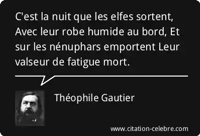 C'est la nuit que les elfes sortent, Avec leur robe humide au bord, Et sur les nénuphars emportent Leur valseur de fatigue mort.