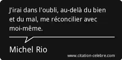 J'irai dans l'oubli, au-delà du bien et du mal, me réconcilier avec moi-même.