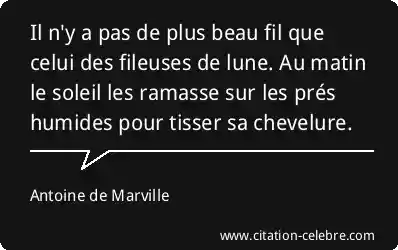 Il n'y a pas de plus beau fil que celui des fileuses de lune. Au matin le soleil les ramasse sur les prés humides pour tisser sa chevelure.