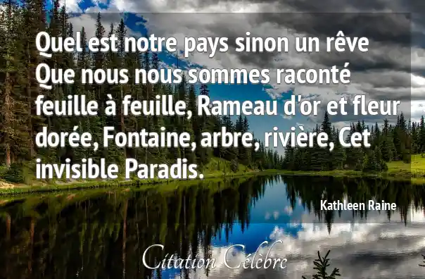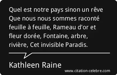 Quel est notre pays sinon un rêve Que nous nous sommes raconté feuille à feuille, Rameau d'or et fleur dorée, Fontaine, arbre, rivière, Cet invisible Paradis.