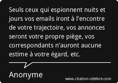 Seuls ceux qui espionnent nuits et jours vos emails iront à l'encontre de votre trajectoire, vos annonces seront votre propre piège, vos correspondants n'auront aucune estime à votre égard, etc.