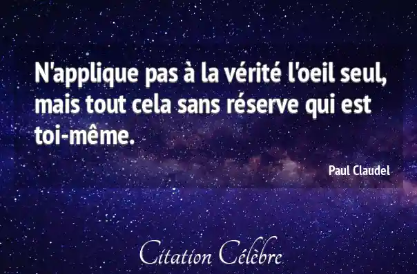 N'applique pas à la vérité l'oeil seul, mais tout cela sans réserve qui est toi-même.