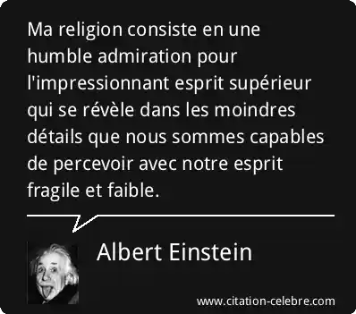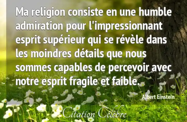 Ma religion consiste en une humble admiration pour l'impressionnant esprit supérieur qui se révèle dans les moindres détails que nous sommes capables de percevoir avec notre esprit fragile et faible.