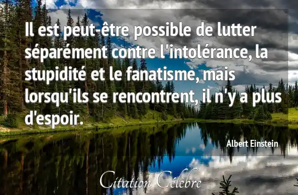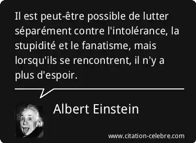 Il est peut-être possible de lutter séparément contre l'intolérance, la stupidité et le fanatisme, mais lorsqu'ils se rencontrent, il n'y a plus d'espoir.
