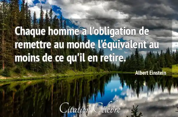 Chaque homme a l'obligation de remettre au monde l'équivalent au moins de ce qu'il en retire.
