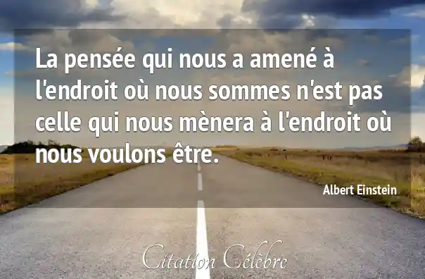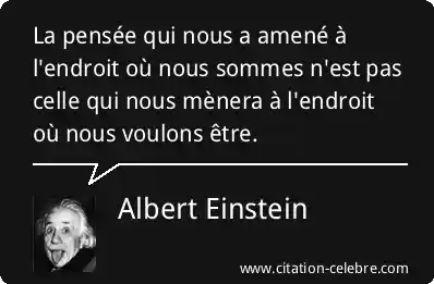 La pensée qui nous a amené à l'endroit où nous sommes n'est pas celle qui nous mènera à l'endroit où nous voulons être.