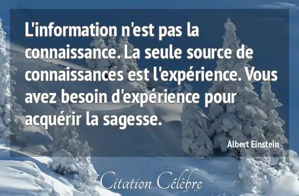 L'information n'est pas la connaissance. La seule source de connaissances est l'expérience. Vous avez besoin d'expérience pour acquérir la sagesse.