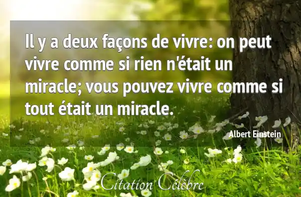 Il y a deux façons de vivre: on peut vivre comme si rien n'était un miracle; vous pouvez vivre comme si tout était un miracle.