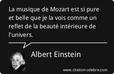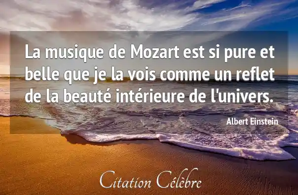 La musique de Mozart est si pure et belle que je la vois comme un reflet de la beauté intérieure de l'univers.
