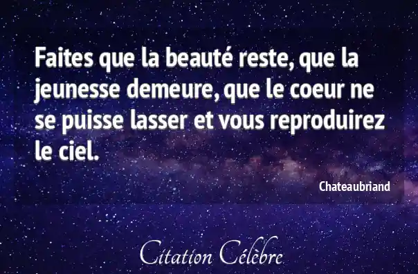 Faites que la beauté reste, que la jeunesse demeure, que le coeur ne se puisse lasser et vous reproduirez le ciel.