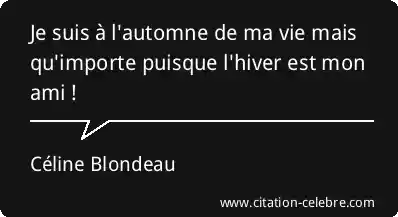 Je suis à l'automne de ma vie mais qu'importe puisque l'hiver est mon ami !