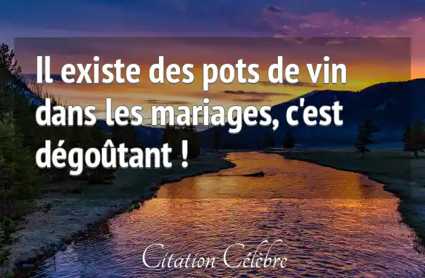 Il existe des pots de vin dans les mariages, c'est dégoûtant !