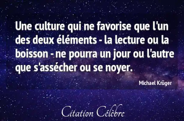 Une culture qui ne favorise que l'un des deux éléments - la lecture ou la boisson - ne pourra un jour ou l'autre que s'assécher ou se noyer.