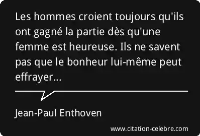 Les hommes croient toujours qu'ils ont gagné la partie dès qu'une femme est heureuse. Ils ne savent pas que le bonheur lui-même peut effrayer...