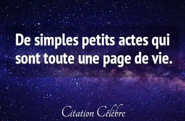 De simples petits actes qui sont toute une page de vie.