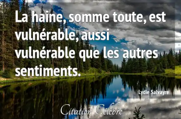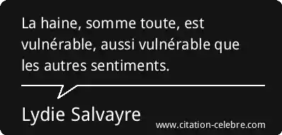La haine, somme toute, est vulnérable, aussi vulnérable que les autres sentiments.