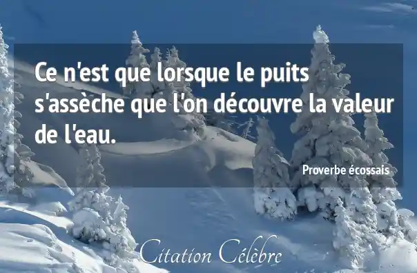 Ce n'est que lorsque le puits s'assèche que l'on découvre la valeur de l'eau.
